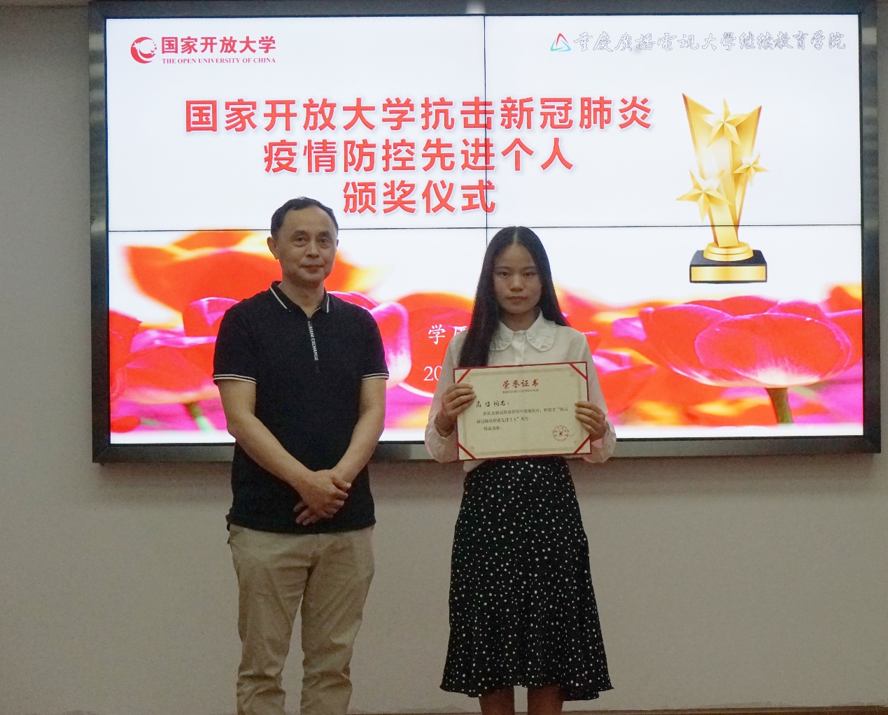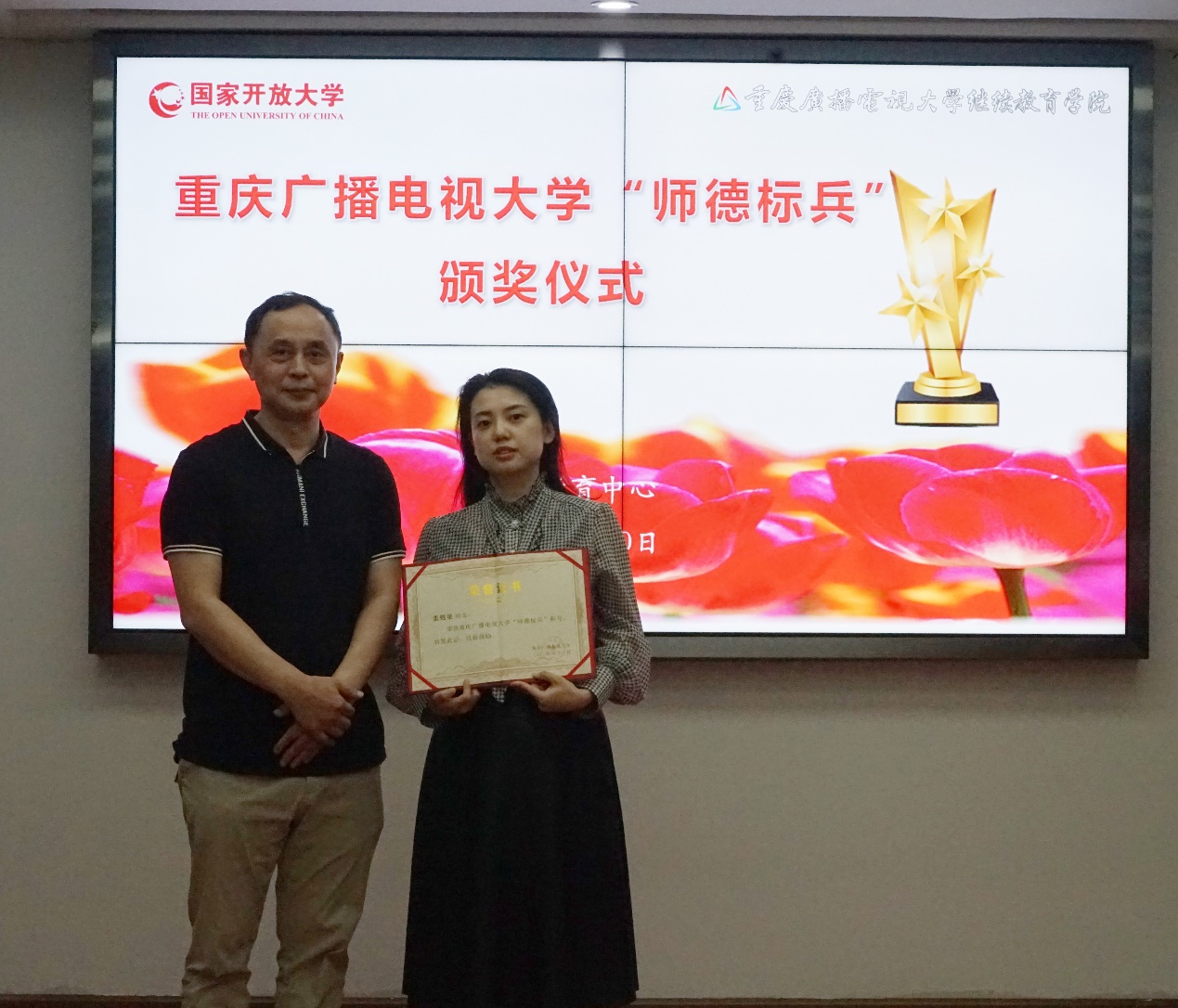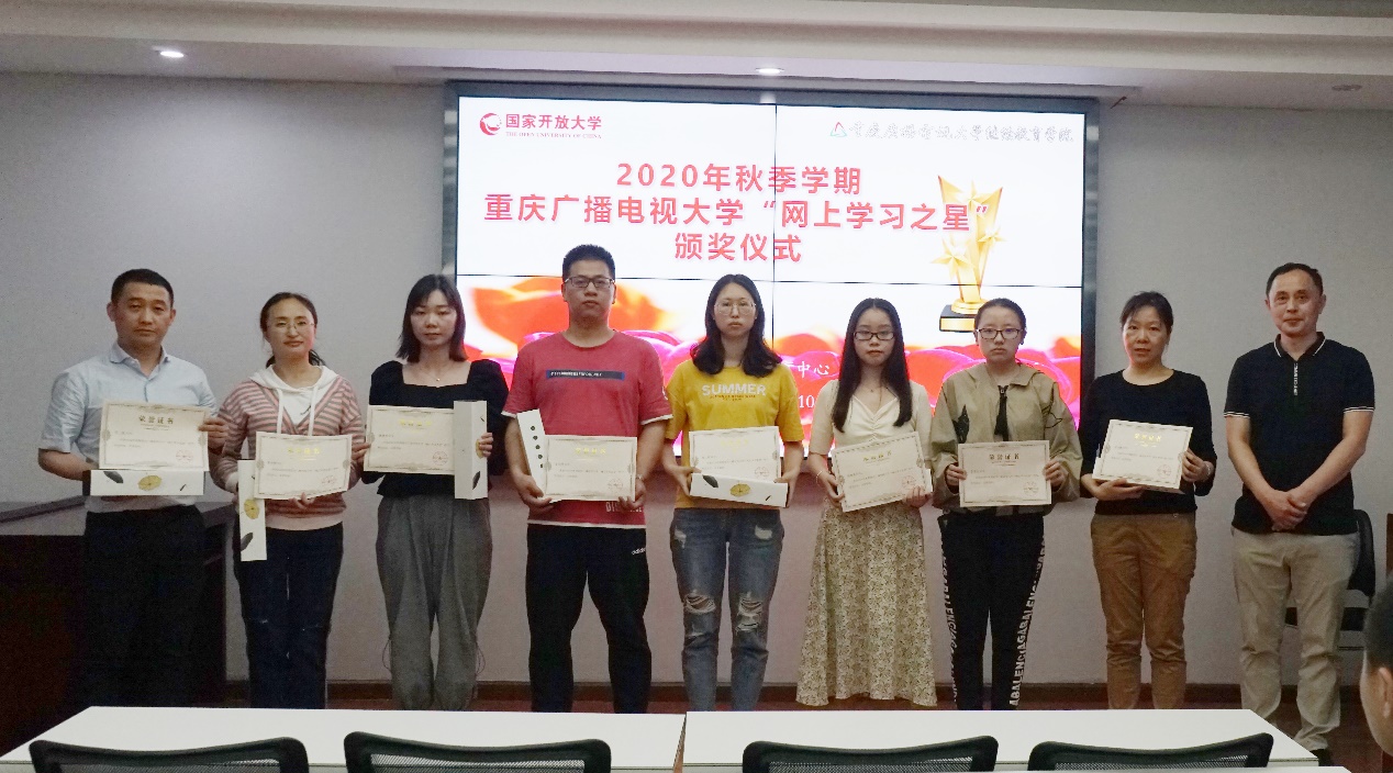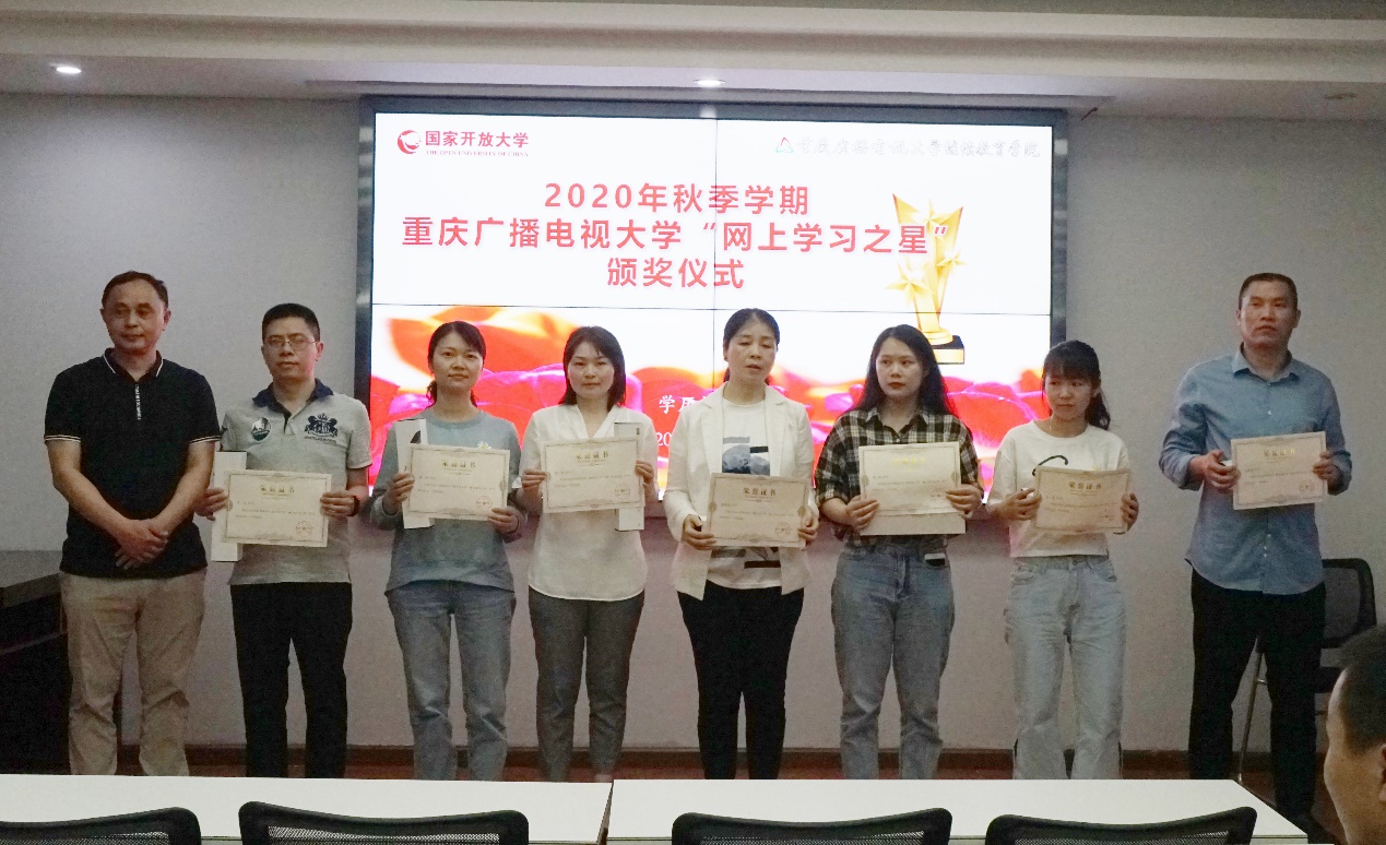 5月10日,学院隆重举行了2020年度重庆广播电视大学优秀毕业生、国家开放大学抗击新冠肺炎疫情防控先进个人、2020年秋季学期重庆广播电视大学网上学习之星和网上教学导学之星以及重庆广播电视大学“师德标兵”、“互联网+”大学生创新创业大赛颁奖仪式。副院长邓红学为获奖师生颁发了荣誉证书和奖品奖金。